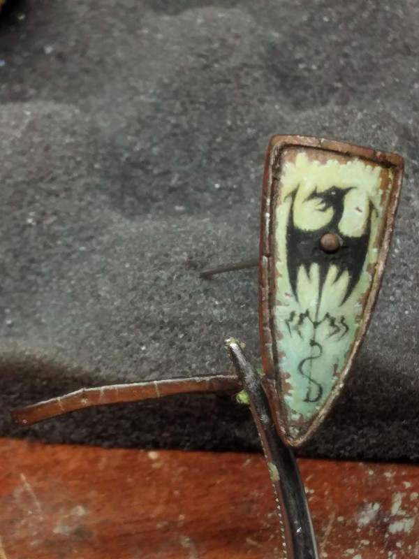 For those not too familiar with the mini, i slightly altered it (i own quite a few originals and hope to paint an unmodified one to go on Polly the wyvern, i.e. the viper-resembling one from ~1987): beside the obvious weapon replacement, i added a pair of goblin noses to the shoulder pad and the hemet visor (using my tested method involving rose thorns) and extended said visor in order to give the mini a more gloomy/enigmatic appearance, just like the wraith in the inspiring artwork.