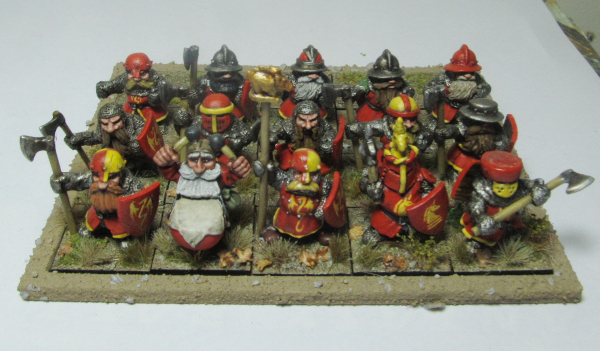 Got slightly side tracked from the rank and file to paint up a couple of command figures. As you can see these are not new Bood Dwarfs but the classic/vintage Perry dwarfs from so many years ago !! Luckily I have plenty of these so all my units can have them. I decided to go for heraldry representing their helmets so Unicorn and Hand. However really struggled with both designs the hand just looks wrong but was the best of a bad bunch and the unicorn ended up looking more like a chess piece !