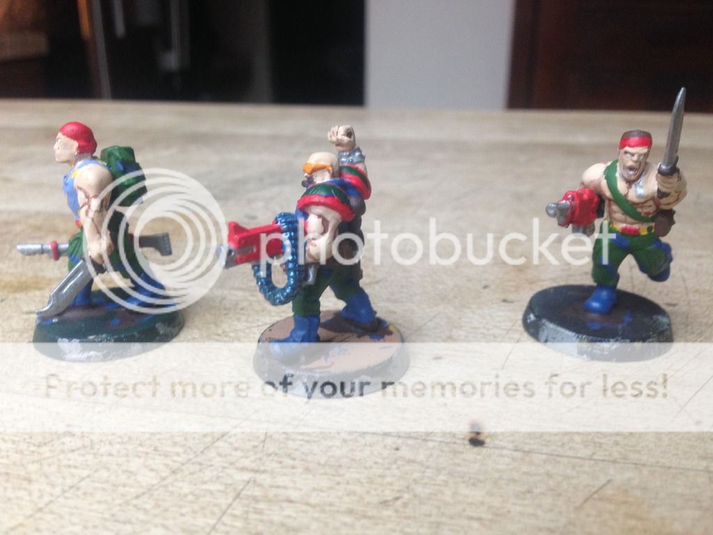 So recap for the regement the catachan (the models) force is conscrip squads with deathworld leaders that sometimes oprorate elites, lots of men with senenals and heavy artillary. The conscrips are men who sought wealth in mines and where trained to fight to protect the mining colonies and just happened to be picked to go to war in the regement while the deathworlders are made of tough men with questionable backgrounds.