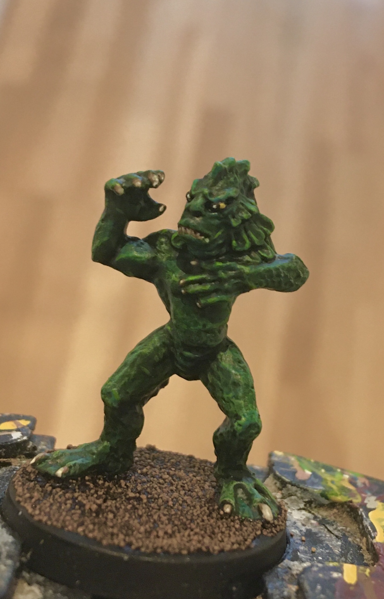 This is "fishman" from the Citadel C18 Night Horrors range. Clearly based upon the Creature from the Black Lagoon, and painted as such. I'm slightly disappointed in this one - colours are duller than i'd hoped for and I've gone for very pedestrian colour choices. That said I love the miniature and (as with "apeman") have therefore taken the plunge and bought a second one to paint up with a bit more of a vibrant colour scheme. If anyone of the forum has anymore spare fishmen that they'd like to trade or sell for a reasonable price please let me know and I'll happily take them off you (would like a good few in different hues).