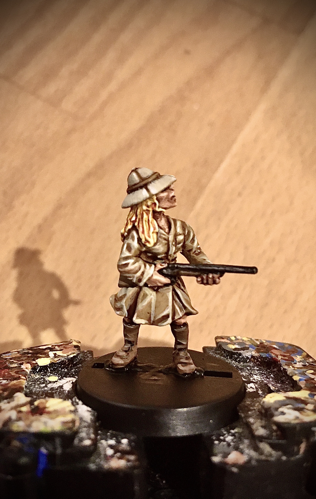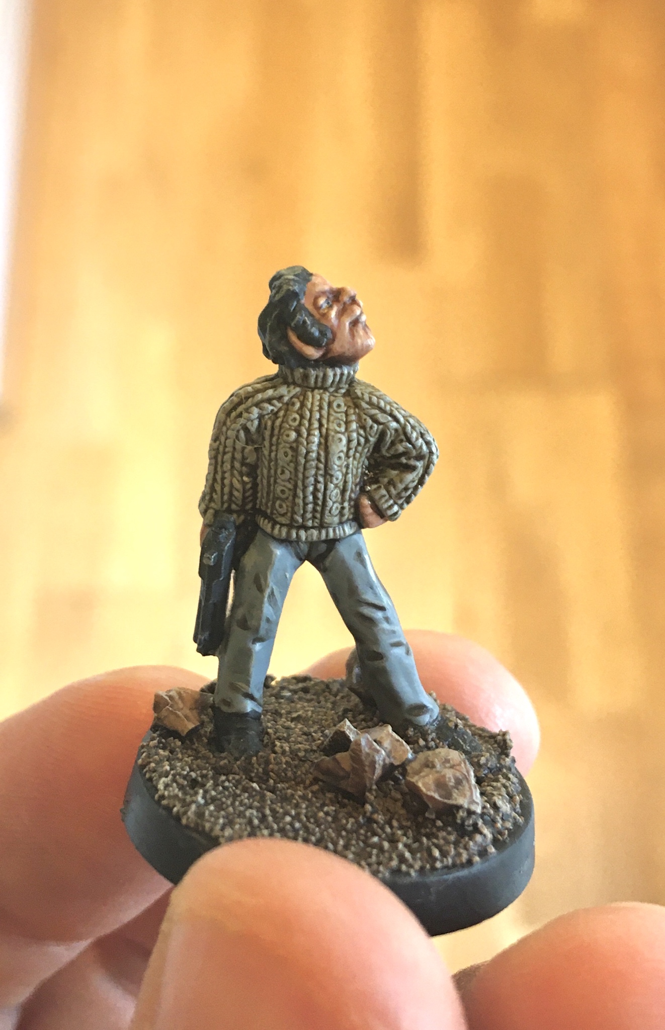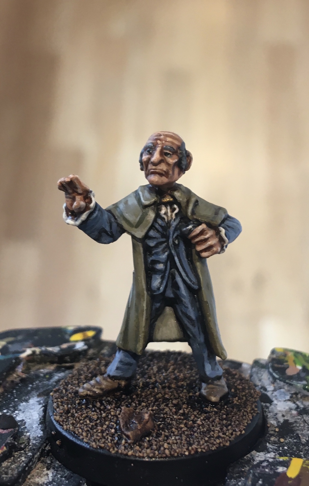 One of my personal favourites in the range so far - he looks to be based upon the John Pertwee Doctor Who (Citadel/Fasa) model from 1985 (just as the Drunk and the Hobo are based upon the Tom Baker's model). There is another model in the range which I don't currently own simply called "investigator" based on the same John Pertwee model, but with a different head and wearing a deerstalker. However for me this is the best one of three, and was fantastic fun to paint.