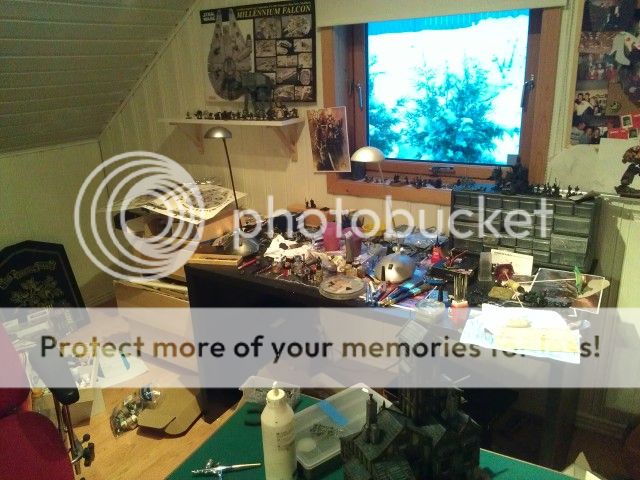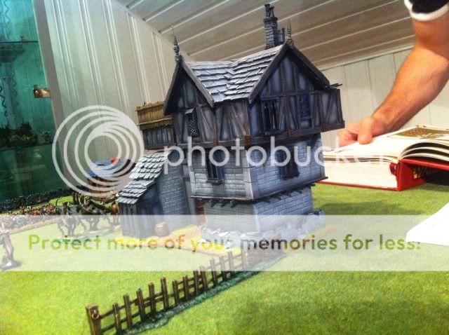 Basecoated the whole building black, then airbrushed the walls and drybrushed the foundation wall and timbers. I swear by the airbrush for large, flat surfaces