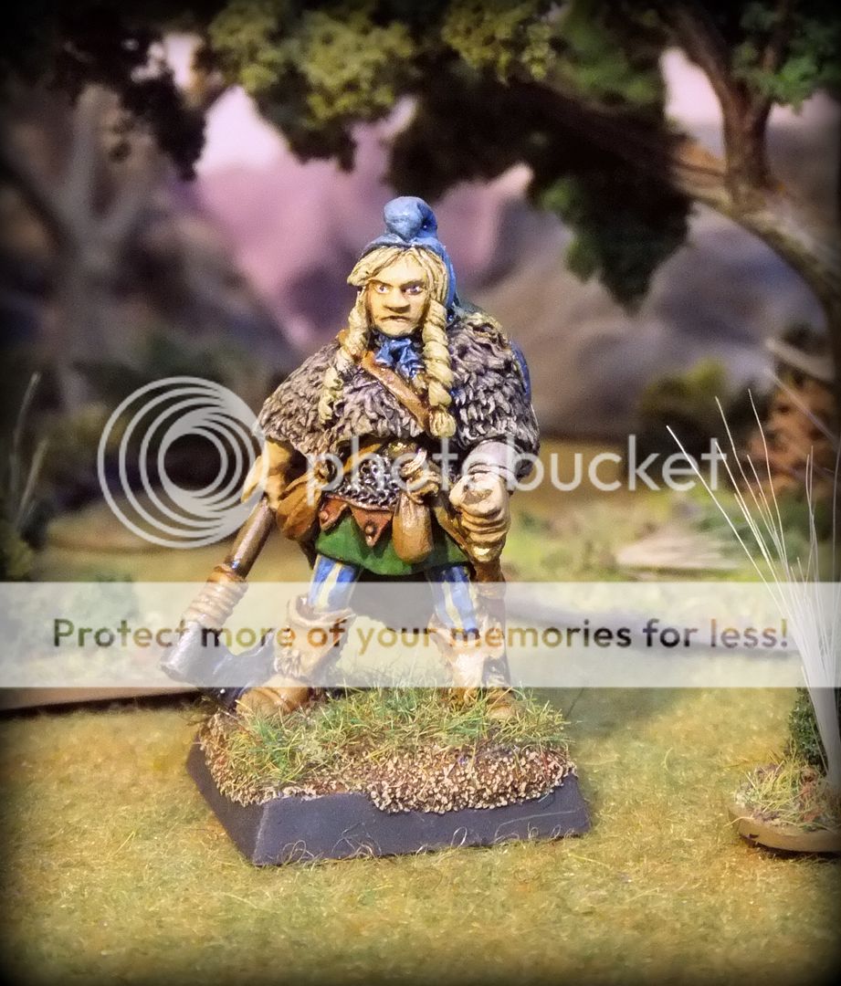 The evil Priestess from the Fantasy Adventurers range. I had a go at making her robe seem a little on the sheer side by adding faint flesh highlights where the cloth was drawn tight. I figured red hair would be pretty in vogue too if it was good enough for Rigg herself!