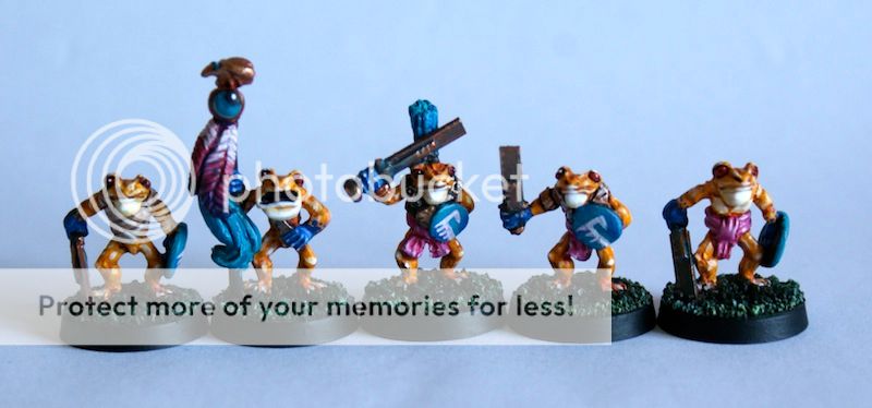 After a long hiatus on my How to Oldhammer project, here's a quick update at last with the first five of my Slann braves finished: