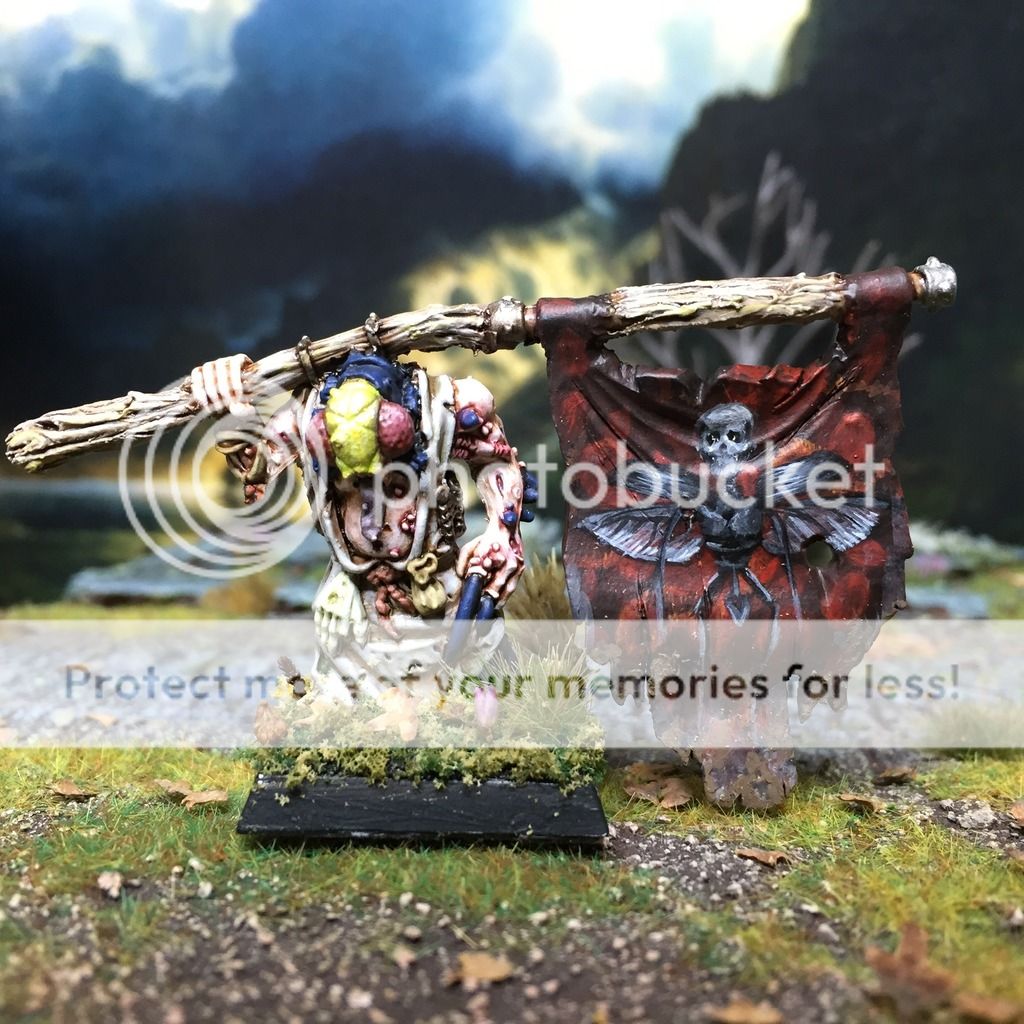 I still need to refine the technique, but basically you apply your base colour (in this case rusty browns) and then spray on your hairspray (I added salt here, but you don't have to). You then carefully apply the colour the armour was before it rusted (in this case green), over the top. When this is dry, use a stiff brush and scratch away the top layer to reveal some of the rust beneath. The hairspray seems to act a bit like a protective, non-adhering layer between the two coats. I imagine it would be easier to use an airbrush to apply the second coat as I had to be very delicate when adding the green layer. Hope this helps?